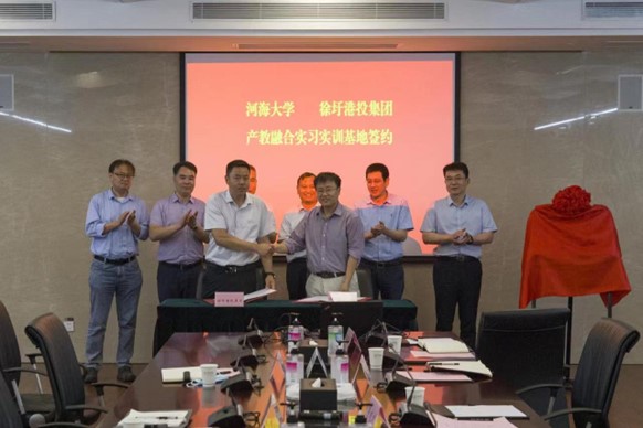6月13日,河海大学港口海岸及近海工程学院党委书记张俊基、副院长张蔚、党委副书记沈国军、水港系主任欧阳峰、团委书记王玲一行赴徐圩新区举行河海大学-连云港徐圩港口投资集团有限公司产教融合实习实训基地签约及挂牌仪式。徐圩新区党工委副书记、管委会主任赵厚峰、唐永明参加。
