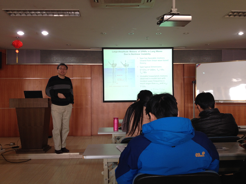 2013年12月27日,麻省理工学院机械系海洋工程组首席科学家(Principle Research Scientist)刘玉明博士应邀来博彩网 进行学术交流,作了题为“Advanced Hydrodynamics Tools for Marine Engineering Applications”的学术报告,报告会由诸裕良副院长主持。