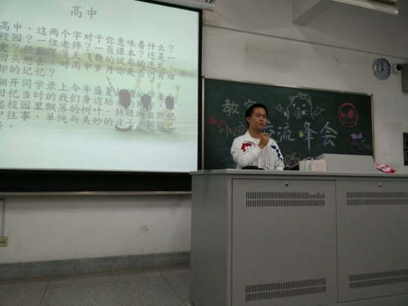 不一样的青春,拥有不一样的故事,或令人感动,或使人钦佩。为了让学生们能够树立积极向上的人生态度,提升学生的“正能量”,博彩网 14级新生在辅导员和海洋一班班委的组织下,于10月31日晚6点在致高楼B305举办了以“故事分享,心灵交流”为主题的成长故事交流会。