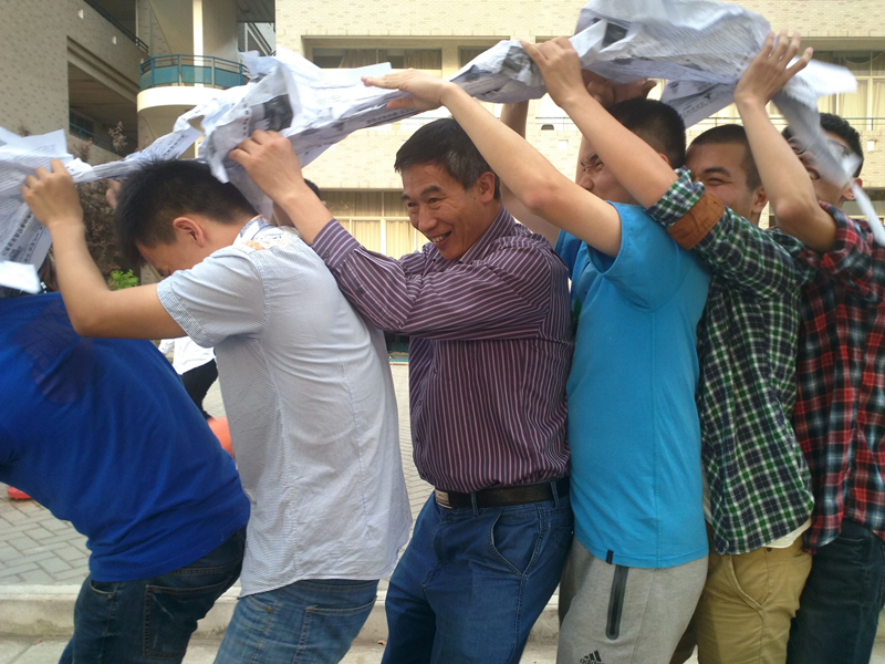 参观结束,蔡辉老师以及辅导员季超老师一起参加了同学们自行组织的趣味运动会。两位老师分别加入其中两组,与同学们共同收获比赛中的乐趣,整个活动洋溢着欢声笑语。