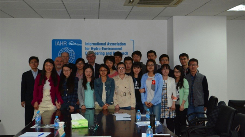 接着我校IAHR学生分会代表参加了在中国水科院举办的学生分会座谈会,IAHR主席及总部其他代表、中国分会代表、以及来自河海大学、中国水科院、清华大学、大连理工大学、天津大学、四川大学、武汉大学等高校学生分会的代表共同出席,并就分会活动开展情况、IAHR未来工作安排等进行了介绍。丁雪霖等同学作为河海大学学生分会代表在会上进行了发言并参加了讨论。