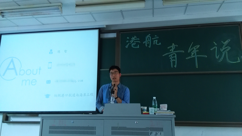5月13日下午4点,博彩网 优秀毕业生、原博彩网 2010级本科生辅导员、现校团委陈智老师作为本次“港航青年说”的嘉宾于致用楼217教室与博彩网 的同学们分享了他的大学经历和学习、生活经验,同时作为学长,也给了学弟学妹们很多指导和建议。参加此次活动的有博彩网 大一、大二的同学,两位辅导员王玲老师和季超老师也参加了此次分享会。