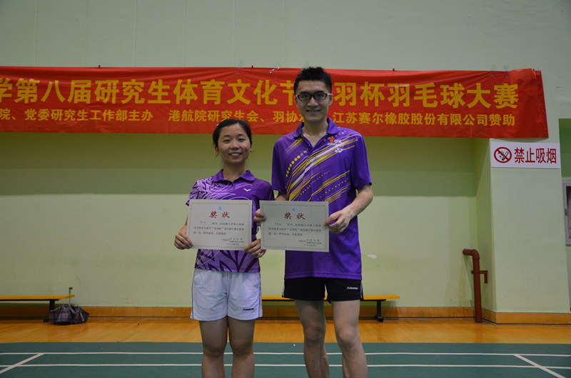 的李逸聪同学以及能电院的熊妍同学分获男、女单冠军。这次羽毛球赛旨在丰富学生的课余生活,促进了同学之间的团结友爱、温馨和谐的氛围,营造了健康和谐的校园环境,受到广大研究生同学的欢迎。
