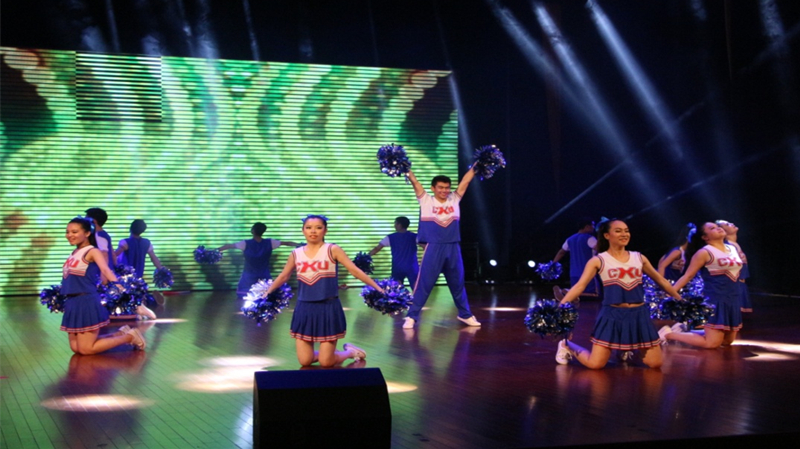 五月,凤凰花开的季节,第四届校研究生啦啦操大赛在江宁文体中心举行。代表博彩网 研究生参赛的12名姑娘、小伙子经过一个月的艰苦训练,在舞台上刮起一场蓝色风暴,取得了三等奖的好成绩。