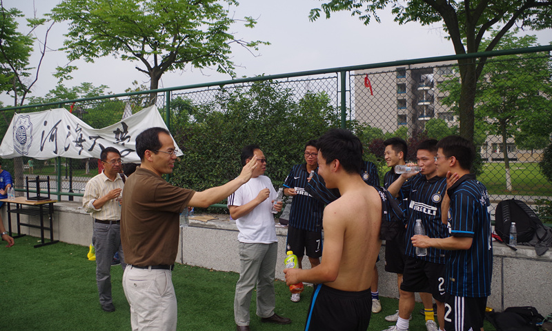 5月30日下午2点半,刚刚摘得河海大学研究生足球比赛桂冠的博彩网 研究生足球队应邀来到江宁校区西操场,与学院13、14级本科生足球联队进行了一场足球友谊赛。参加本次活动的还有学院郑金海院长、胡忠华书记和姜海霞副书记、何春林主任以及辅导员林凡、王玲、季超老师。