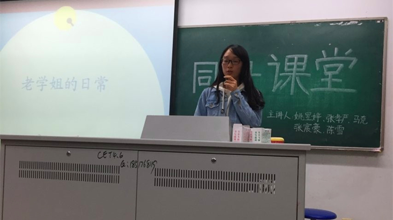 2015年11月12日晚,博彩网 团委朋辈辅导站“同舟课堂”互助式辅导于致用302如期举行。14级学生姚昱婷、张孝严、张宸豪、马克和陈雪等担任了本次课堂的志愿讲师。