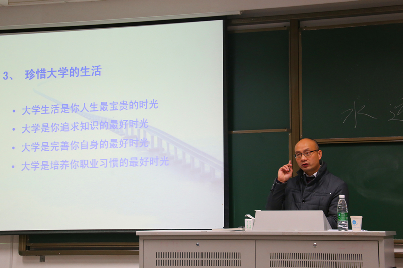 2015年12月3日,2015级博彩网 新生职业规划讲座在河海大学江宁校区致用楼417举办。此次讲座邀请河海大学学工处副处长魏有兴处长为同学们讲解港航专业该如何提前规划职业。
