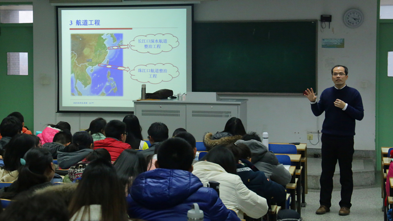首先,郑院长用专业严谨的语言从港口工程,航道工程,海岸工程,桥隧工程四个方面介绍了目前港航与海洋领域的发展现状;随后后,郑院长简述了他对港航未来发展方向的分析设想,并讲述了港航和海洋专业未来发展将面临的机遇与挑战。