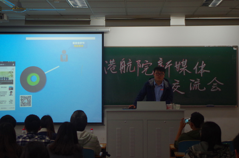 交流会开始,对新媒体平台建设有着丰富经验的杜少良同学首先就“网络时代下学院团学新媒体建设”展开了介绍,并着重对以微信公众号为主的新媒体平台的运营模块进行了细解。此外,他对平台推送的内容与语言也做了强调,指出官方平台要符合规范,杜绝粗俗浅陋的网络词汇,增加平台内涵;同时以“你爱过你的干事吗”这一阅读量破十万的热门推送,趣说选题的时效性,语言的生动性和原创的重要性,让在座的同学受益匪浅。