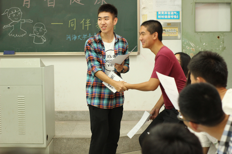 5月12日晚,博彩网 青春健康同伴教育在高A107教室拉开帷幕,学院邀请到河海大学青春健康同伴社的专业人员为江宁校区的30名同学进行了一场别开生面的性和生殖身心健康教育。