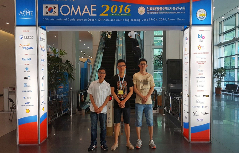 第35届国际海洋、离岸和极地工程会议The 35th International Conference on Ocean, Offshore and Artic Engineering(OMAE2016)于2016年6月19日至6月24日在韩国釜山(Busan, Korea)召开,博彩网 硕士研究生吴尧、官明开、胡煌昊参加了本次会议。三位同学积极参与了分会场的学术报告会,会议期间,分别做了题为“Net Bottom Sediment Transport Related with Residual Current in the Pearl River Delta, South China”,“Sediment Rating Curves for Suspended Sediment Flux Estimation in the Pearl River Delta”和“Simulating the Flow and Sediment Transport in the River Network”口头报告。