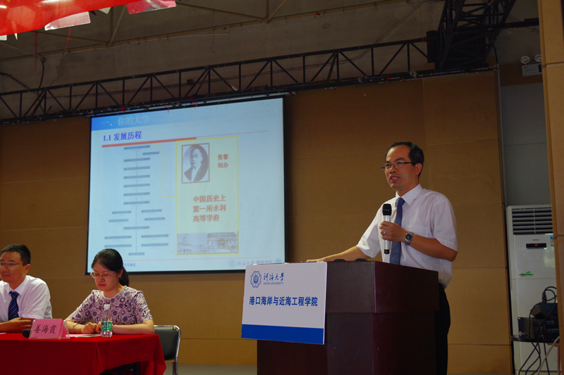 随后郑金海院长详细介绍了博彩网 历史概况、发展及办学理念。郑院长强调了“艰苦朴素,实事求是,严格要求,勇于探索”的校训,对港航专业介绍和前景发展进行了深入剖析。他幽默风趣而又富有逻辑性的叙述赢得掌声连连,深刻而富有意味的讲话令人深思。