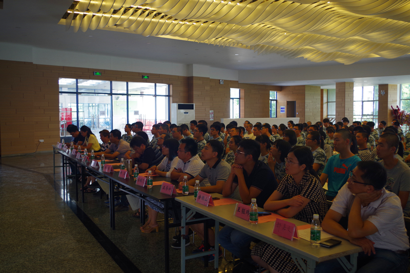 典礼上,全体学生身着军训服,精神焕发,朝气蓬勃。奏唱国歌之后,胡忠华书记率先致欢迎辞,一篇“以洪荒之力,勇攀科学高峰”,生动且满怀真情地表示了对来自五湖四海的新同学的欢迎。胡书记对他们寄予了厚望,希望新生能够珍惜大学生活学习的宝贵机会,能够利用学校里的一切有利资源,汲取知识,锻炼自己,提升情操,开拓创新,争做一名合格的大学生。