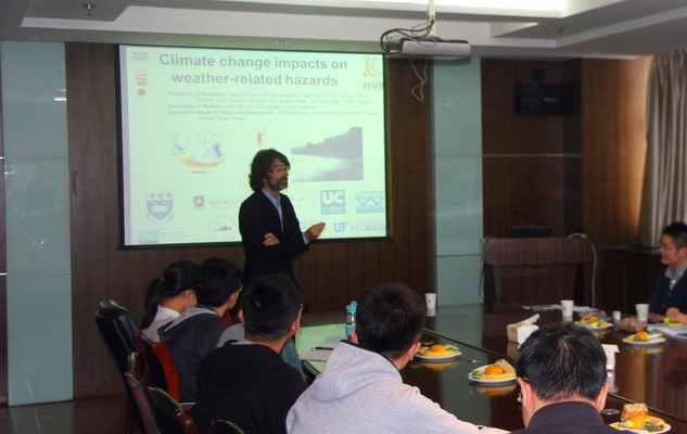 2016年10月25日下午,在‘2016年度校级外国文教专家聘请计划’项目的资助下,新西兰奥克兰大学Giovanni Coco副教授及意大利帕多瓦大学Andrea D'Alpaos副教授来博彩网 开展学术交流活动,分别做了题为“On the biomorphodynamics of estuarine environments”和“Branching and meandering tidal networks: field observations, mathematical modelling and laboratory experiments”的学术报告,探讨了沙纹形成机理、盐沼发育过程、河口灾害风险评价,以及潮沟分叉及曲流演变相关研究成果,与参会师生进行了充分的交流和讨论。