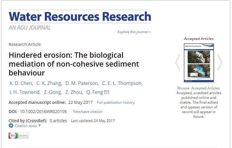 近日,博彩网 15级博士生陈欣迪同学以第一作者身份在一区期刊《Water Resources Research》上发表了题为Hindered erosion: The biological mediation of non-cohesive sediment behaviour的学术论文,其攻读博士学位的导师是张长宽教授。该论文的本校其他合作作者包括龚政教授、周曾副研究员以及环境学院冯骞副教授。此外,来自英国南安普顿大学与圣安德鲁斯大学的业内知名学者也合作参与了本项研究。