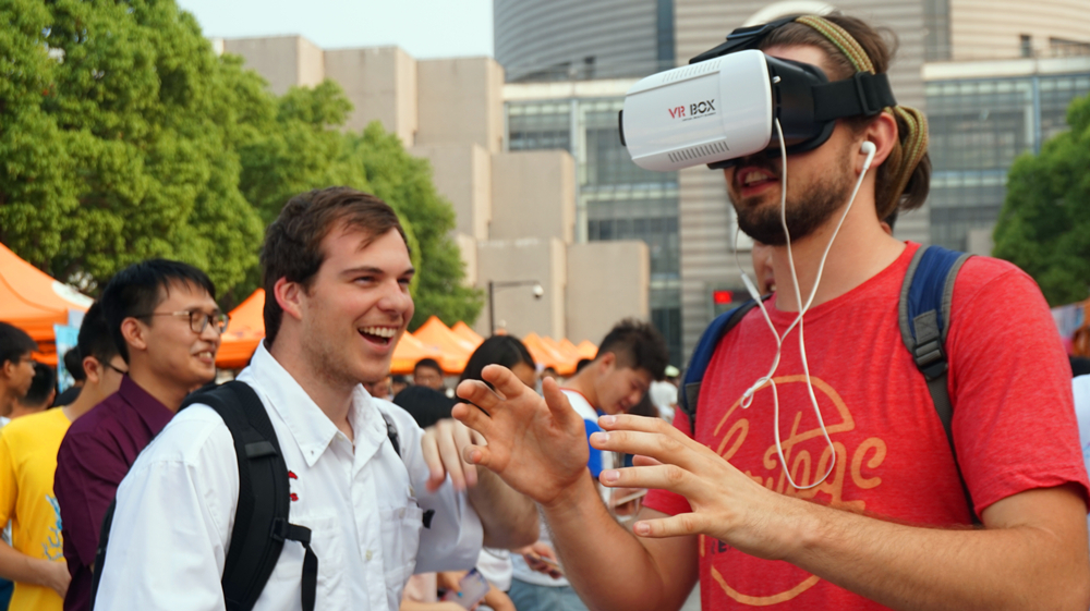 下午4点,游园会活动正式开始,此次学院的“VR”展台活动分为:扎气球、你画我猜、表情包大作战和“VR”展台四个部分。扎气球活动考验着参与者的专注度和维持平稳心态的能力,你画我猜与表情包大作战则充分考量着参与者之间的默契与信任,一系列趣味十足的心理小游戏吸引了许多同学前来参与,而高科技VR更是将本次游园会推向了高潮,同学们争相前来体验,甚至吸引了不少外国友人,让博彩网 的展台充满了欢声笑语,一跃成为人气最高的展台。