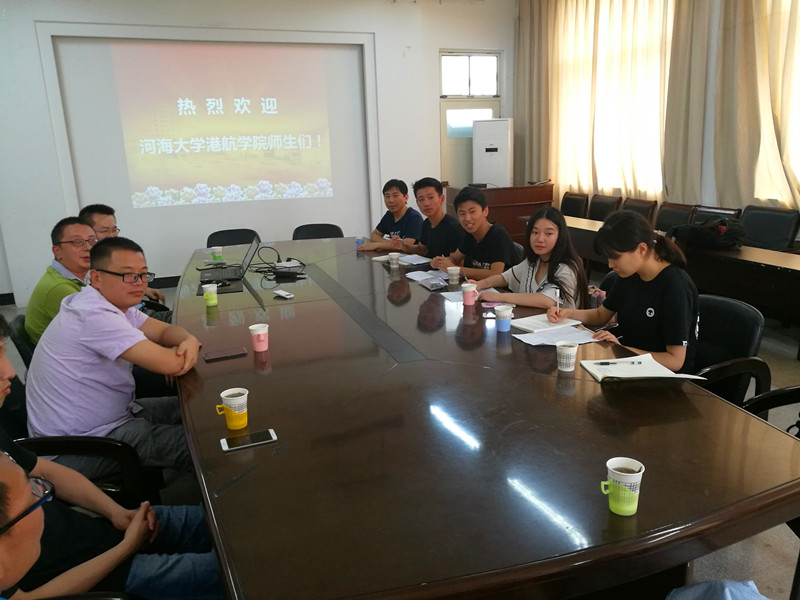 7月10日下午2点30分,在淮海工学院的会议室进行了一次座谈会。出席本次座谈的有淮海工学院负责此次交流的土木院常务副院长朱文谨院长、辅导员郭利老师、唐毅老师及与高校合作共建项目有关学生代表。大家在会议上积极讨论,实践团的成员对淮工与河海大学的交流项目有了更深的了解。