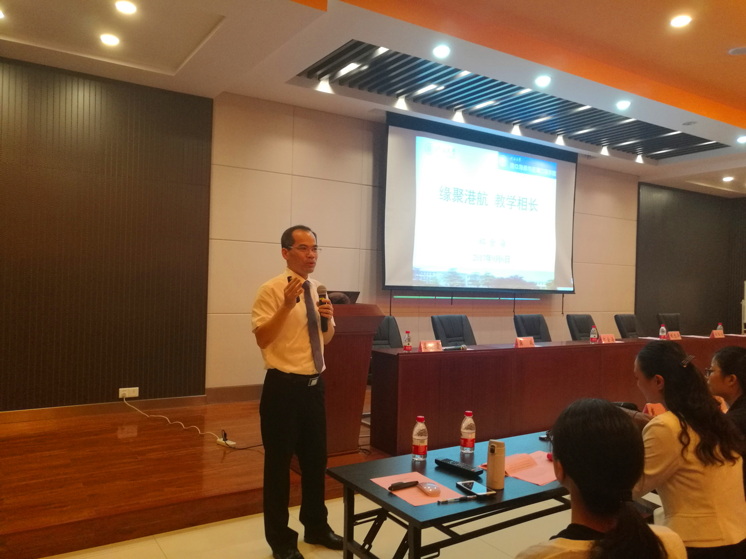 2017年9月6日下午,博彩网 郑金海院长以《缘聚港航,教学相长》为题,在思源楼107会议室为博彩网 2017级全体新生讲授开学第一课。