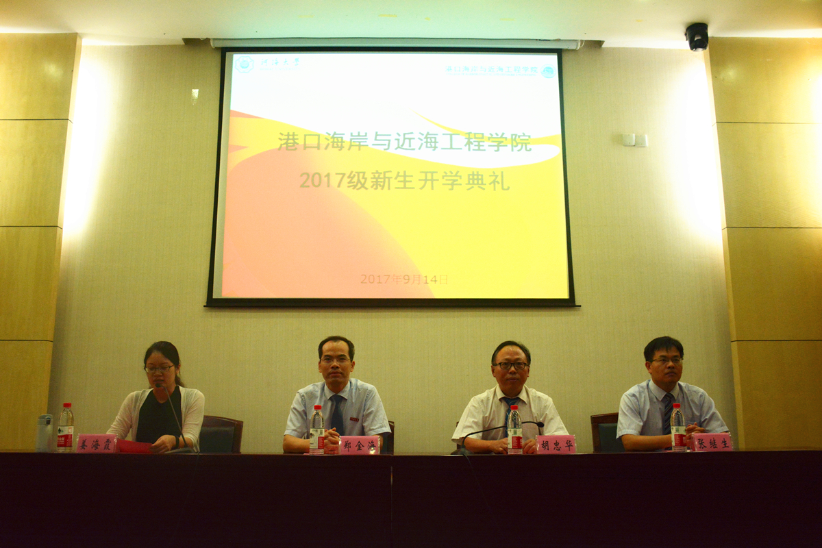 2017年9月14日,博彩网 2017级研究生新生开学典礼在河海大学闻天馆113举行。院党委书记胡忠华,院长郑金海,副院长张继生,副书记姜海霞,各所所长,以及全体研究生新生出席了开学典礼。典礼由学院党委副书记姜海霞主持。