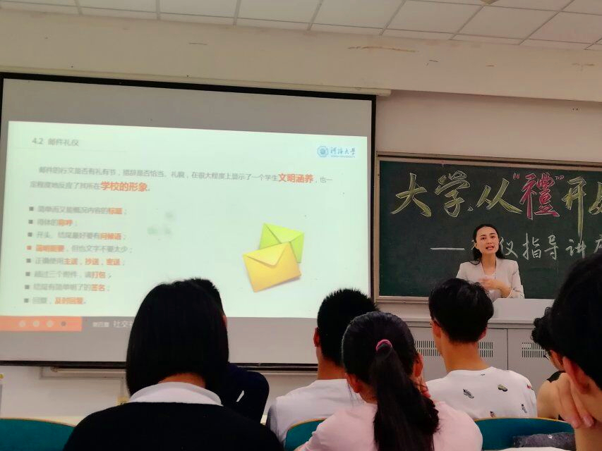 9月26日,博彩网 面向2017级本科新生进行礼仪指导,2017级本科生辅导员王玲老师在江宁校区致高楼B楼111教室主讲了此次讲座。