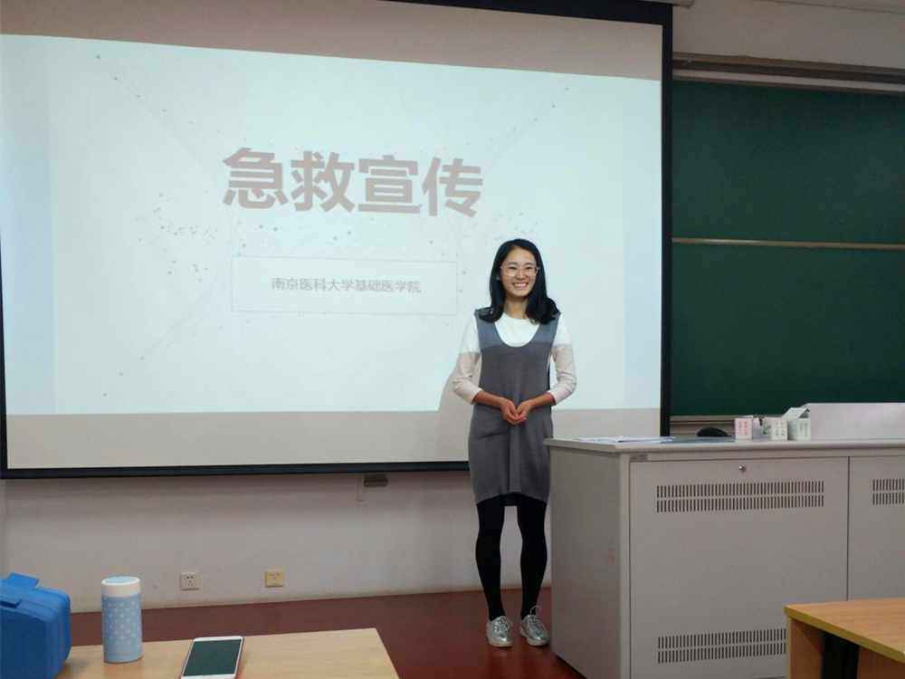 下午13时30分,活动正式开始,共分为三个部分。第一部分急救知识小讲堂。南京医科大学的同学们演示了CPR心肺复苏、海姆立克急救法、不同情况下如何辨别止血的部位以及应急包扎和止血带的使用方法等多项日常生活中的小贴士。第二部分艾滋病科普。为同学们讲解了艾滋病的基本概念、临床表现及治疗、传播与预防方法。最后所有同学在主持人的耐心指导下一起学习了血压计的测量方法及原理。同学们对于自己感兴趣的问题还进行了提问互动,收获满满。