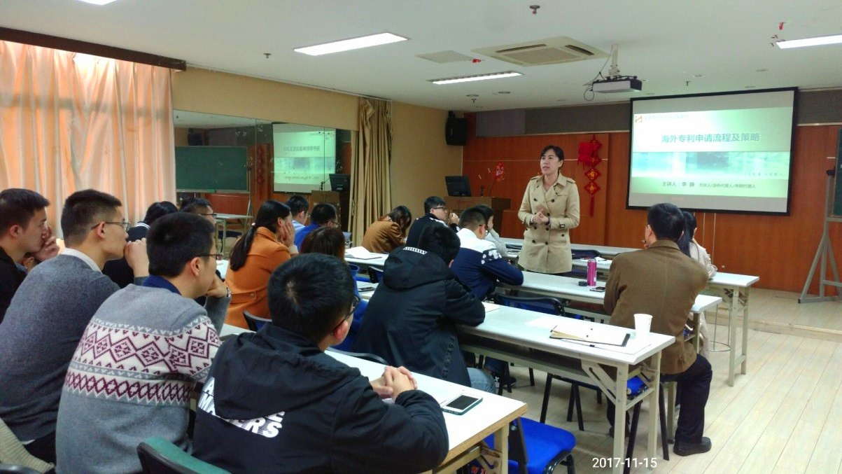 涉外代理人李静为师生作了题为“海外专利申请流程及策略”的报告。报告介绍了海外专利申请的目的和意义,海外专利申请的途径及选择,欧美专利申请的流程与费用,以及目前省内的资助政策等。报告结束后,常务副所长(涉外部部长)肖明芳针对师生在专利申请过程中遇到的问题及疑问进行了详细的解答,交流会取得了很好的效果。