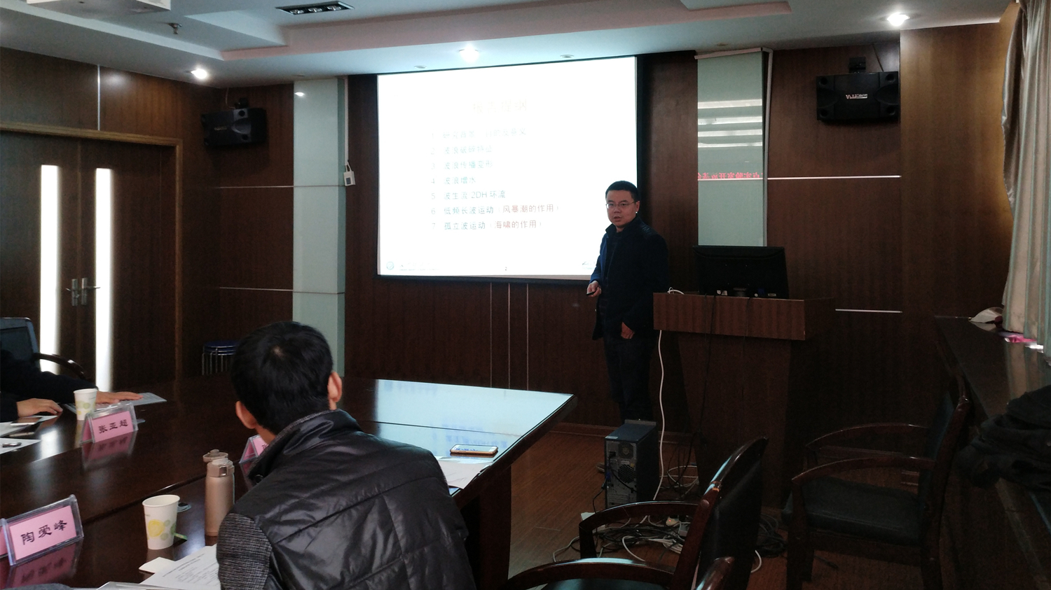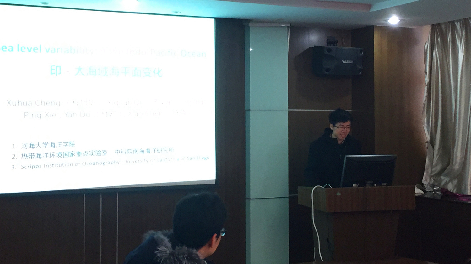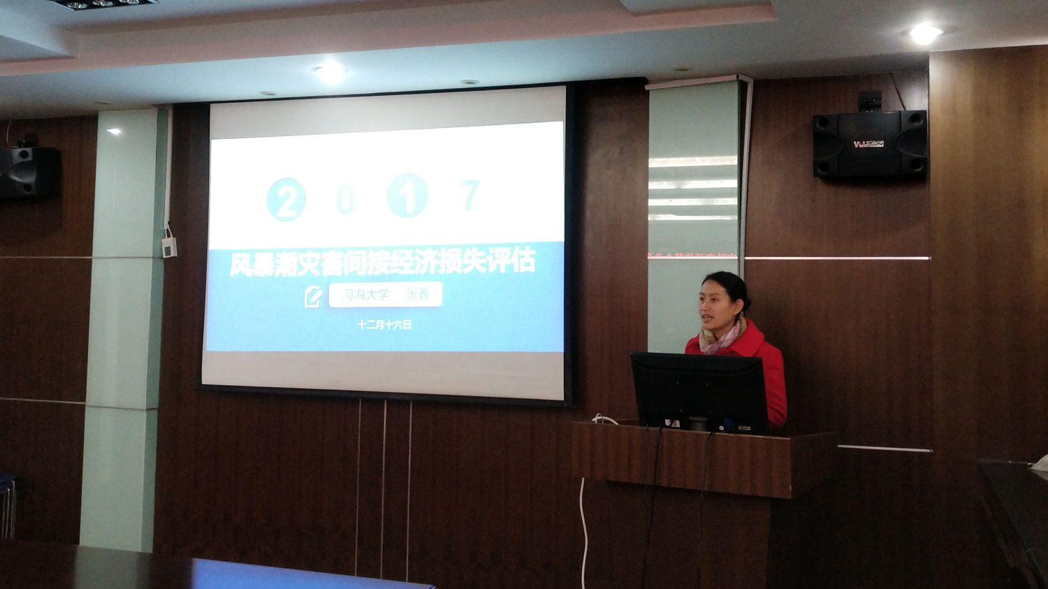 会议由学术交流和座谈会两个环节组成。陶爱峰副主任主持了学术交流环节。该环节中,实验室“海岸灾害形成及发展机制”研究方向学术带头人、河海大学海洋学院程旭华教授做了题为“印—太海域海平面变化特征及其机制”的特邀报告;福建省海洋预报台水文预报部李雪丁主任做了题为“福建省海洋观测预报业务体系”的报告;国家海洋局东海海洋调查勘察中心张亚超工程师首先介绍了东海海洋调查勘察中心和主要业务范围,并做了题为“上海市海洋灾害奉献评估与区划”的学术汇报;长沙理工大学姚宇副教授做了题为“珊瑚礁附近孤立波的传播变形和爬高研究”的学术报告;河海大学公共管理学院张鑫副教授做了题为“风暴潮灾害间接经济损失评估”的学术汇报;河海大学土木与交通学院徐鹏副教授做了题为“桩—散粒体结构在海岸防护工程中的应用”的学术汇报。
