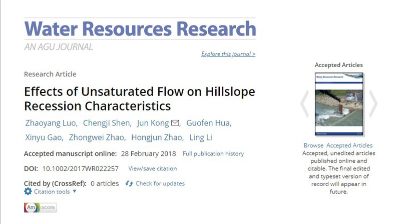 近日,博彩网 2017级博士研究生罗照阳(导师:孔俊教授)在《Water Resources Research》上发表了题为“Effects of Unsaturated Flow on Hillslope Recession Characteristics”的学术论文,该研究是继孔俊教授2016年提出的Kong-HSB理论的又一重要突破。