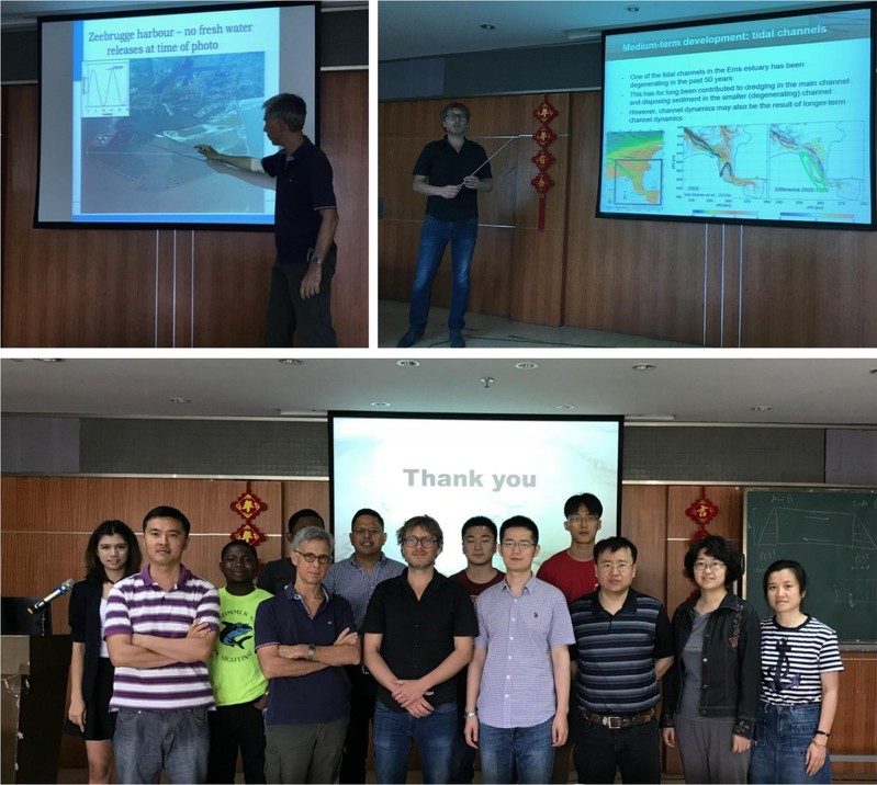 2018年5月17日至5月18日,荷兰代尔夫特理工大学、荷兰三角洲水利科学研究院Han Winterwerp教授与Bas van Maren副教授来博彩网 进行学术交流和访问。Han Winterwerp教授作了题为“Sediment-fluid interactions”的学术报告,报告系统介绍了细颗粒泥沙与水流的相互作用以及其在河口海岸地貌演变中的应用价值。Bas van Maren副教授做了题为“Estuarine morphology, turbidity and human interventions”的学术报告,报告围绕欧洲Ems河口地貌在自然营力和人类活动影响下的演变过程和机理,指出疏浚引起的河道加深、泥沙运动、底床降阻、潮汐不对称性之间的反馈机制。Han和Bas与在座师生进行了深入的学术交流。学院周曾老师等多位从事河口海岸泥沙运动及地貌学研究方向的老师以及研究生参加了学术报告。