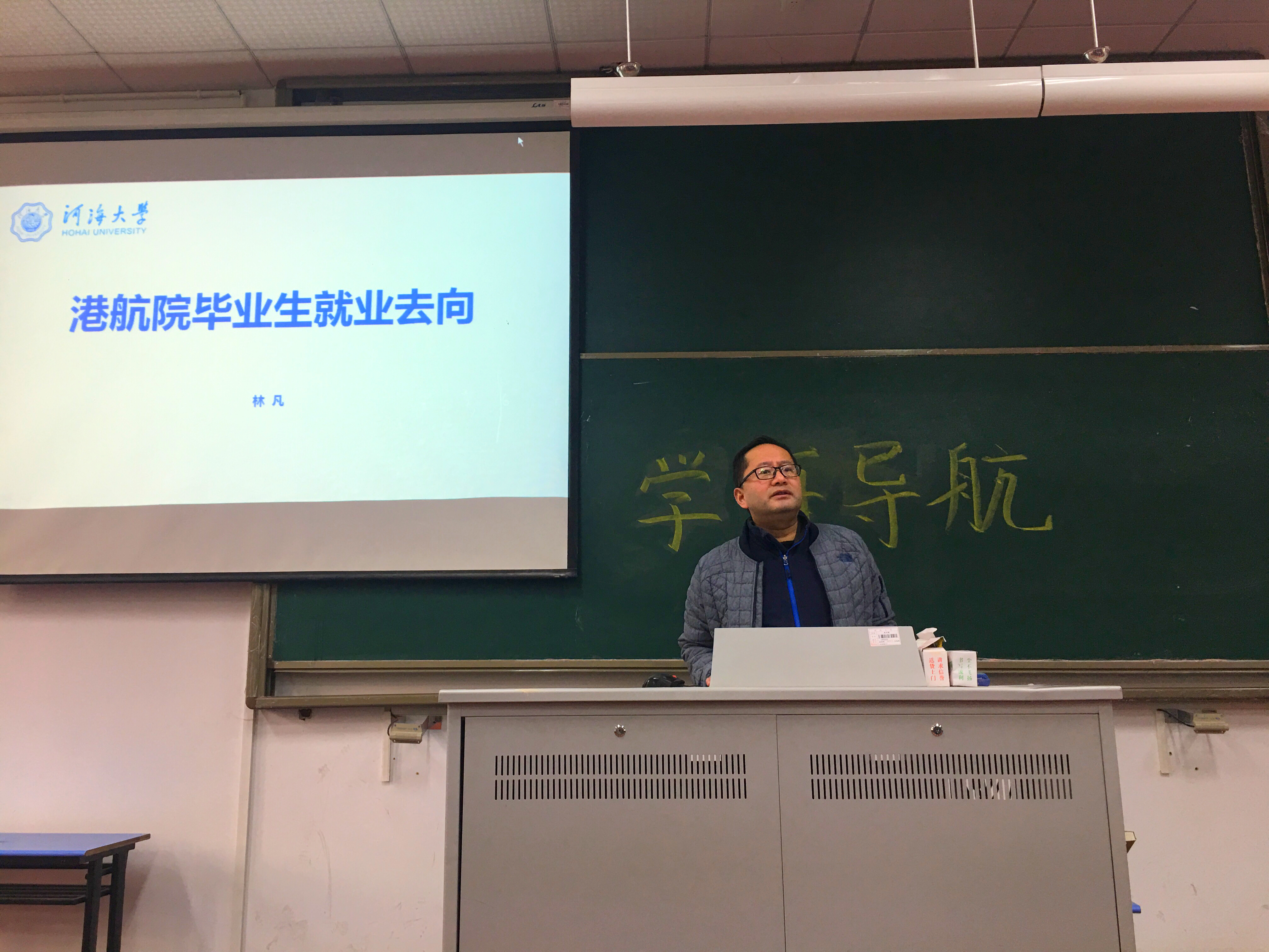 在鼓楼校区水利馆201举办了2016级就业指导讲座。本次讲座有幸邀请到研究生辅导员林凡老师为同学们介绍近几年来港航专业创业就业的现状,16级辅导员张同鑫老师和16级全体本科生参加了此次讲座。