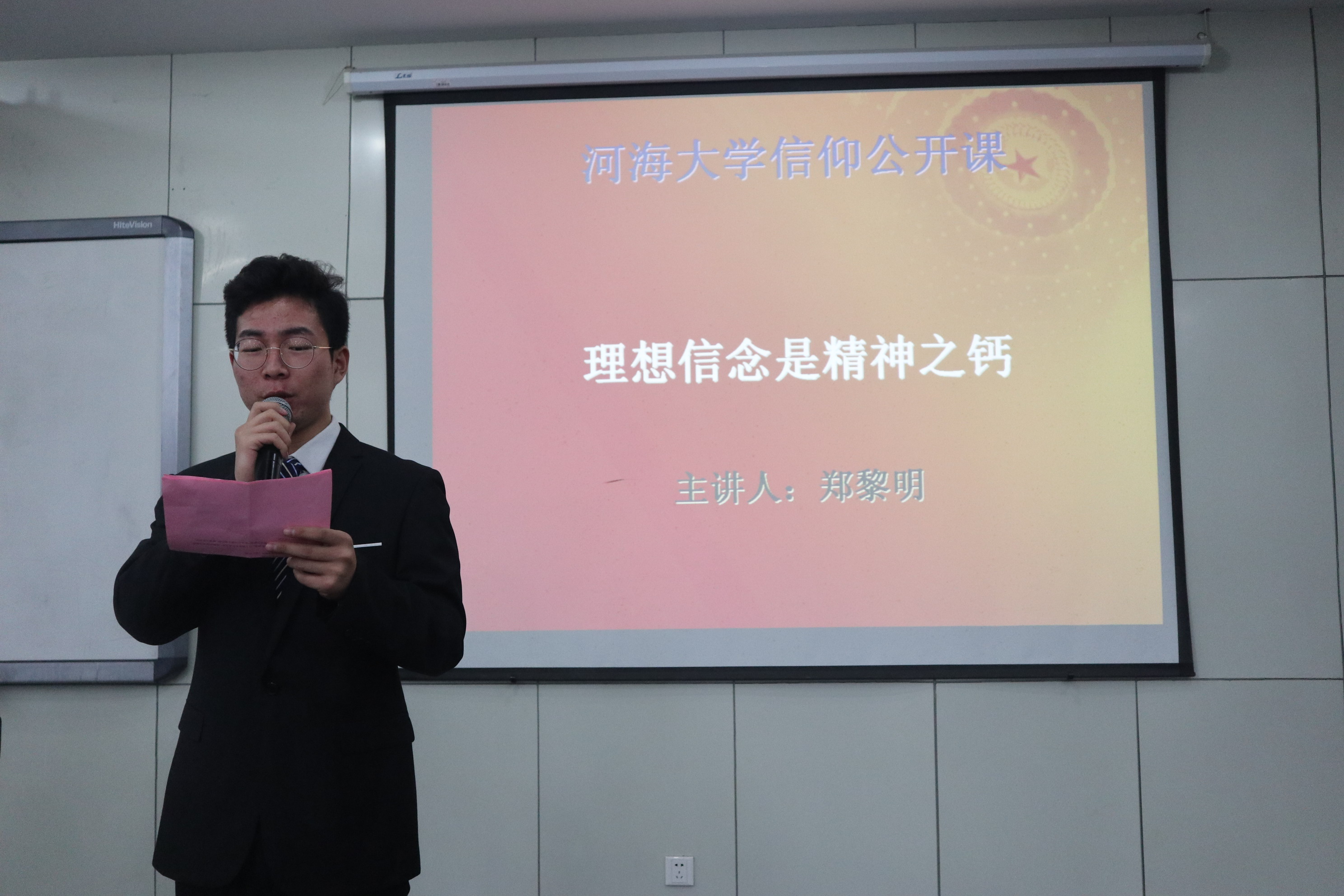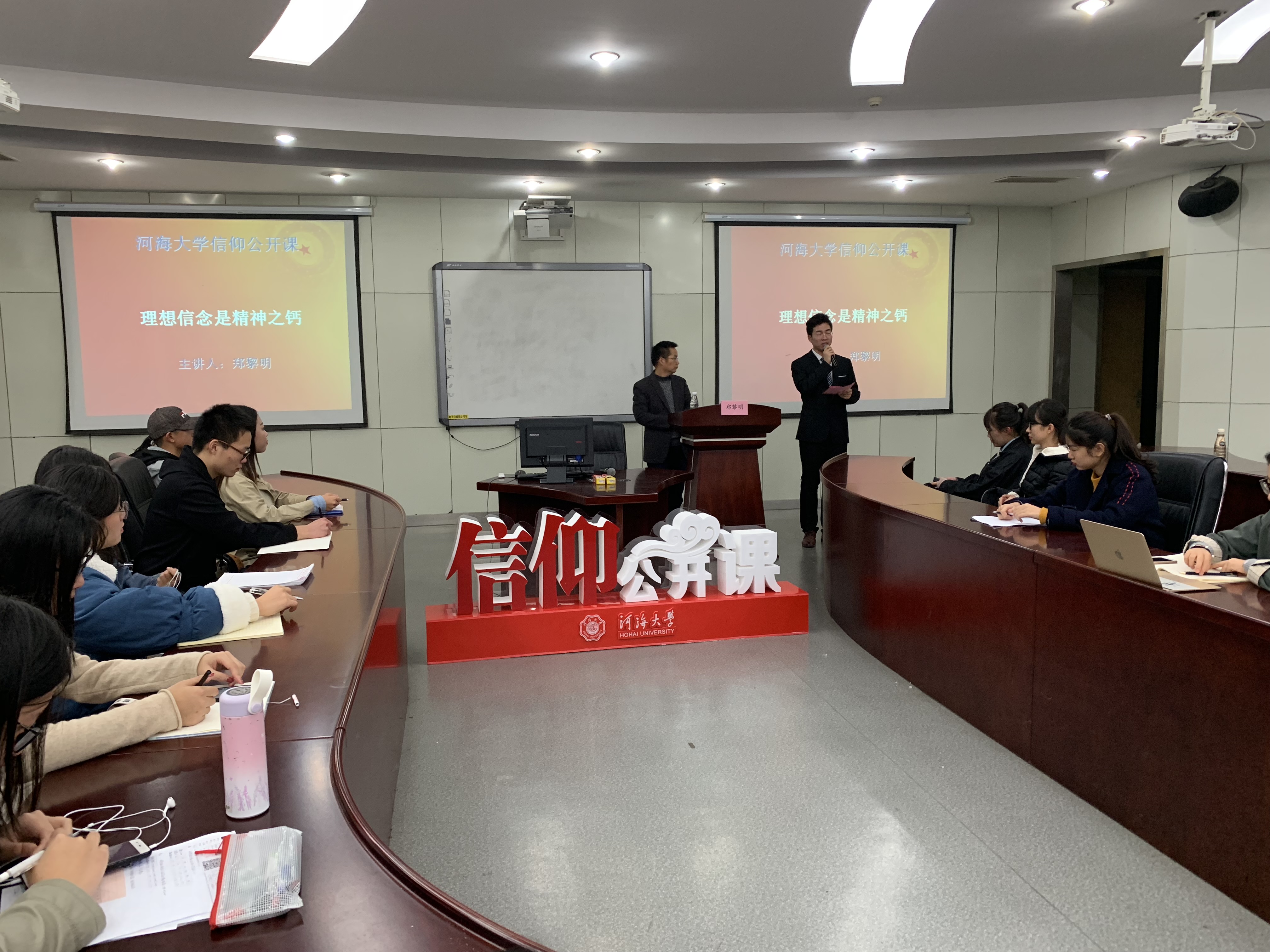 联合水文院、法学院以及马克思主义学院在博A100合作开展了以“理想信念是精神之钙”为主题的院级青马公开课,本次活动有幸邀请马克思主义学院郑黎明副教授作为主讲人,四院青马骨干参加了此次活动。