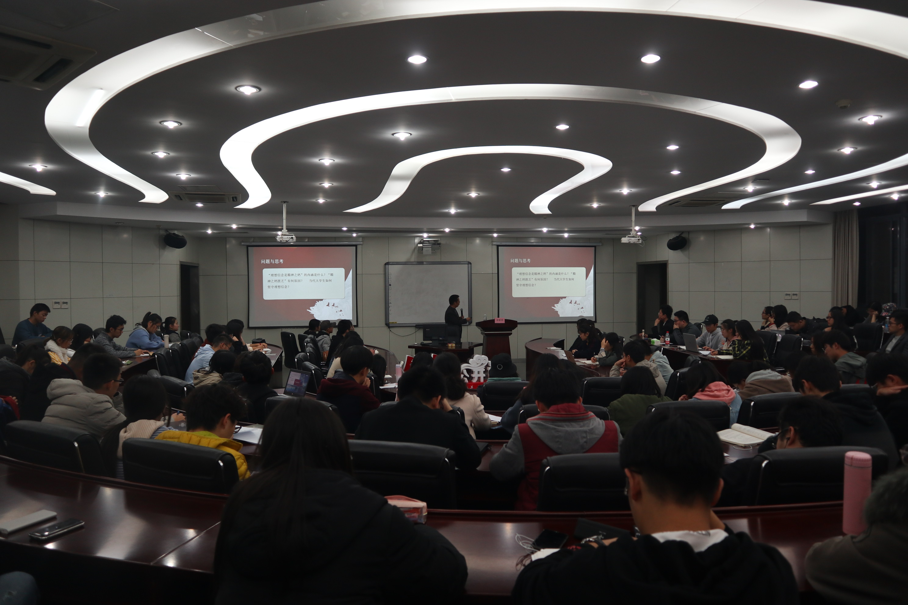 郑教授强调,大学生坚守理想信念需要追求真理并宣讲真理,树立问答逻辑,勇于答卷。时代和人民群众是出卷人,中国共产党人是答卷人,当代大学生既是出卷人也是答卷人,应当为历史和人民交出一份满意的答卷。他勉励同学们携起手来,坚守信念,实现理想!