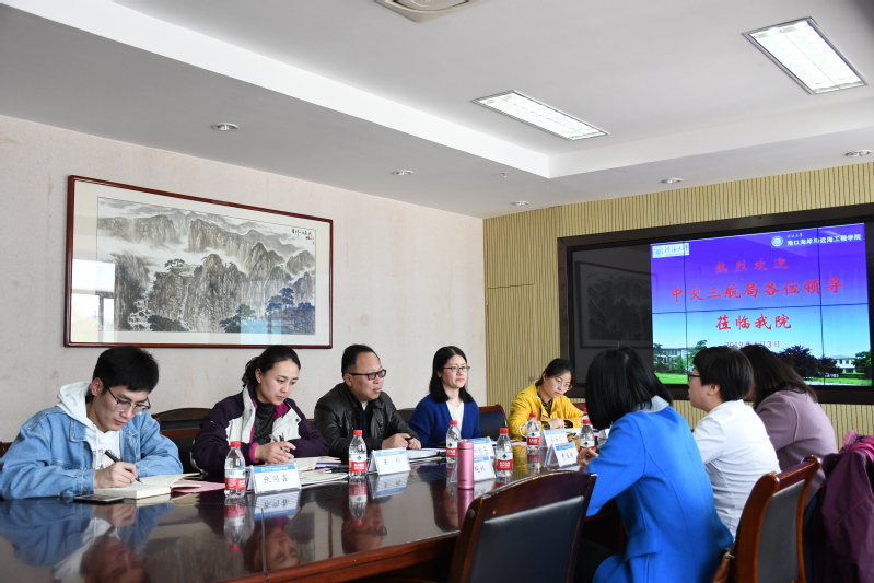2019年4月3日下午,中交第三航务工程局有限公司人力资源部高级主管费佳颖、第三工程有限公司人力资源部经理梁艳娇、副经理王珍一行3人到博彩网 开展调研,双方就校企合作、校园招聘、人才培养等方面的工作进行座谈交流。学院胡忠华书记、姜海霞副书记、王玲老师、季超老师、顾钰恒老师、张同鑫老师参加了座谈。