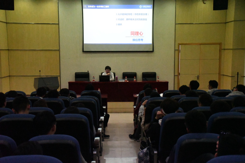 随后,费经理结合她的招聘经历,告诉大家一名应届毕业生应当坚定职业理想、培养职业人格、克服本领恐慌,在工作中体现自己的能力和价值,努力成为一名优秀的工程师。