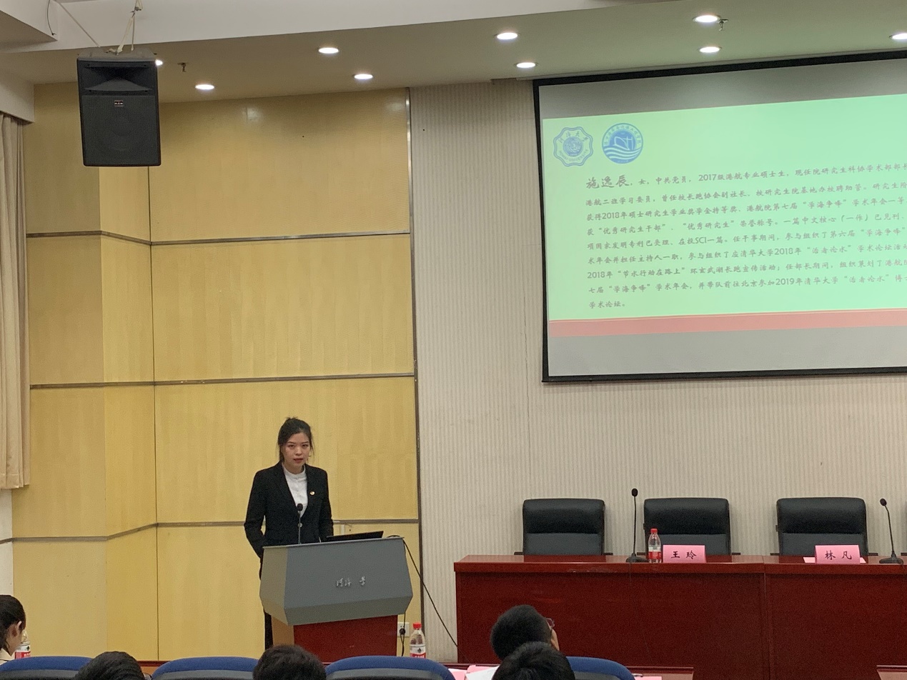 4月21日,博彩网 第十七次研究生代表大会在闻天馆举行。开幕式由院研会宣传部刘钰同学主持,院团委书记王玲老师、院研究生辅导员林凡老师出席会议,院研究生会代表、院研究生科协代表、兄弟学院代表等参加会议。校研会代表黄茵同学发表致辞。