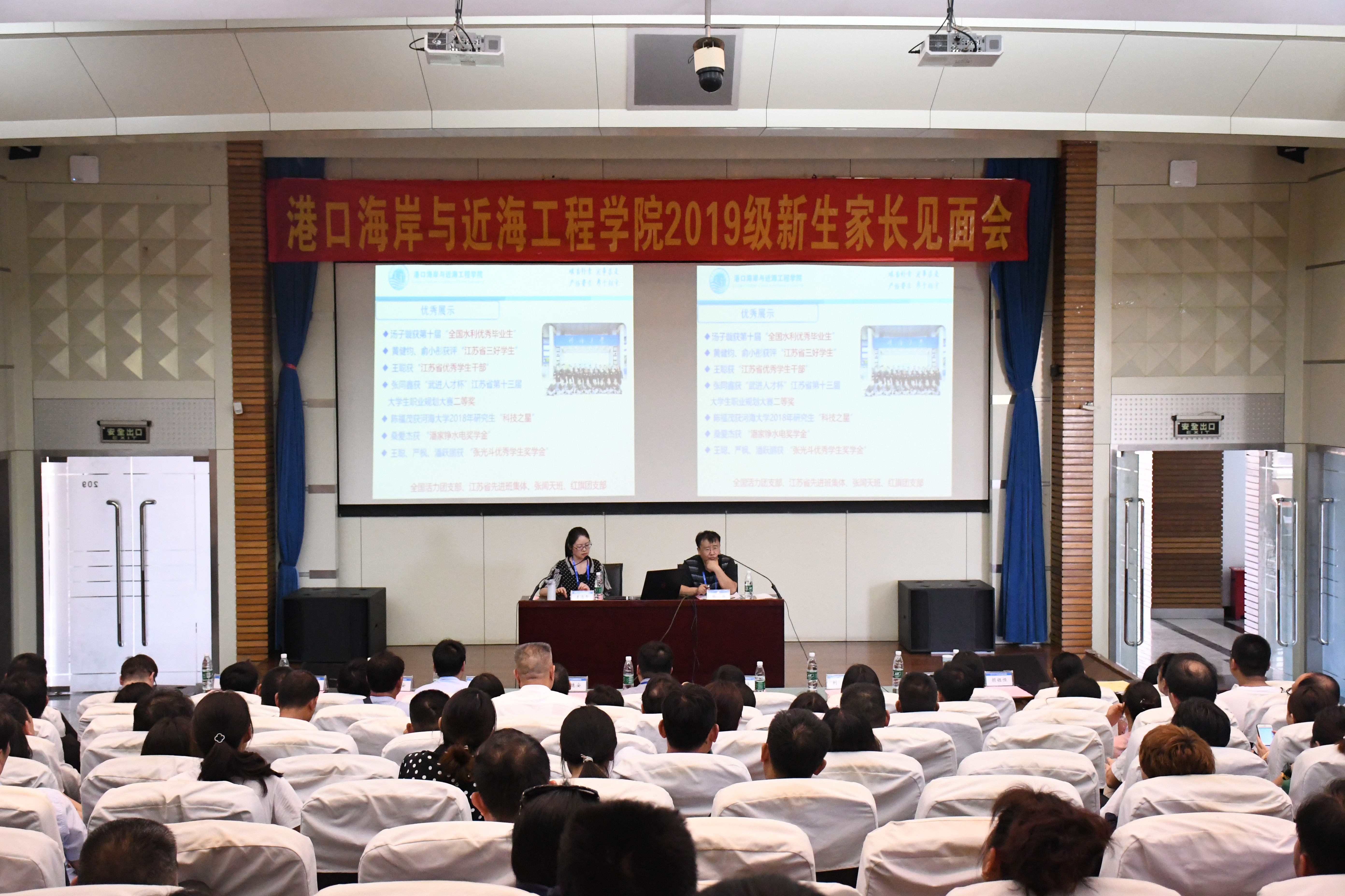 会上,张蔚副院长向家长们介绍了河海大学的基本情况、发展历程、发展现状和卓越贡献,并对博彩网 的发展历程、师资队伍、科学研究等方面进行了详细阐述,同时就组织社团、奖学金、国际交流等方面对新生寄予厚望。姜海霞副书记以“构筑良港,扬帆远航”为主题对博彩网 学生工作进行介绍,介绍分为思想引领、生涯教育、第二课堂、日常管理、就业升学和优秀展示六大板块,同时她以“脚踏实地,仰望星空,构筑良港,航行万里”十六个字表达了她对博彩网 2019级新生的期待。