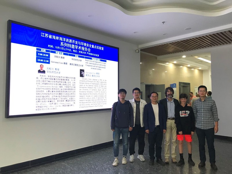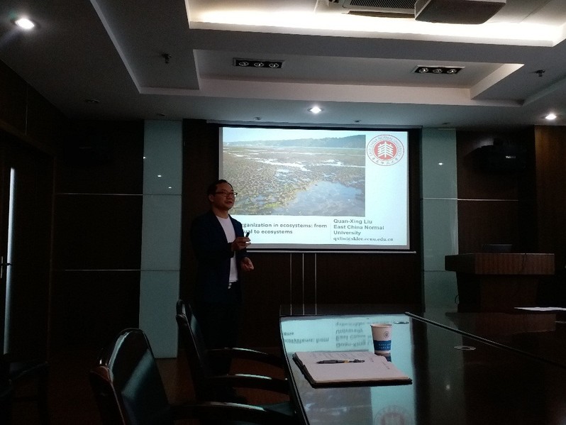2019年10月12日上午,华东师范大学刘权兴教授与奥克兰大学Giovanni Coco教授在严恺馆502分别作了题为“self-organization in ecosystems: from individual to ecosystems”和“Complexity, Self-Organization and Pattern Formation: mixed sediments”的学术报告,围绕生态系统自组织这一个研究领域,从模型原理、水动力因素与生物量的互馈机制等方面展开了详细的阐述。