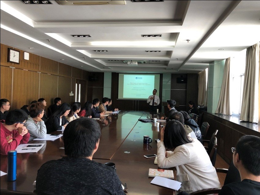 2019年10月30日英国邓迪大学教授Masoud Hayatdavoodi应张继生教授邀请来博彩网 开展学术交流。Masoud教授作了题为“Wave Loads on Coastal Structures: The Nonlinear Shallow Water Wave Equations”的学术报告,介绍了非线性浅水方程在计算作用在海岸结构物的波浪力的最新研究进展。报告会由陶爱峰教授主持,会后,Masoud教授与现场相关专业老师和学生进行了深入探讨。