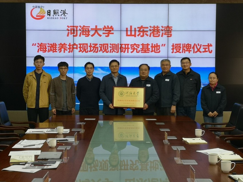 2019年11月13日,博彩网 诸裕良副院长、张弛教授等一行4人前往山东省日照市与山东港湾建设集团有限公司为河海大学海滩养护现场观测研究基地与河海大学大学生实习实践就业基地举行授牌仪式。出席本次仪式的还有山东港湾建设集团有限公司总工程师刘安、工程技术室主任来永刚、日照港退岸还海项目负责人庄磊、工程设计咨询公司副经理张贵改。