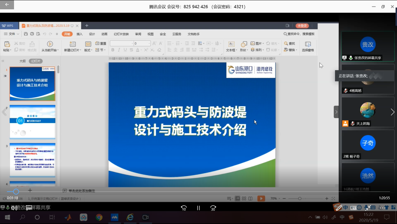 根据教育部、省教育厅关于新冠肺炎疫情防控工作要求,河海大学疫情防控期间将2020届本科毕业实习从线下实习调整为线上实习。港口海岸近海工程学院根据学校总体布置,结合学院自身特点,学院制定出详细的线上毕业实习方案。邀请行业内具有丰富工程实践经验的专家,从港口工程、海岸工程和航道工程的规划、设计和施工为本科毕业生开展了为期4天共八场的讲座(表1)。