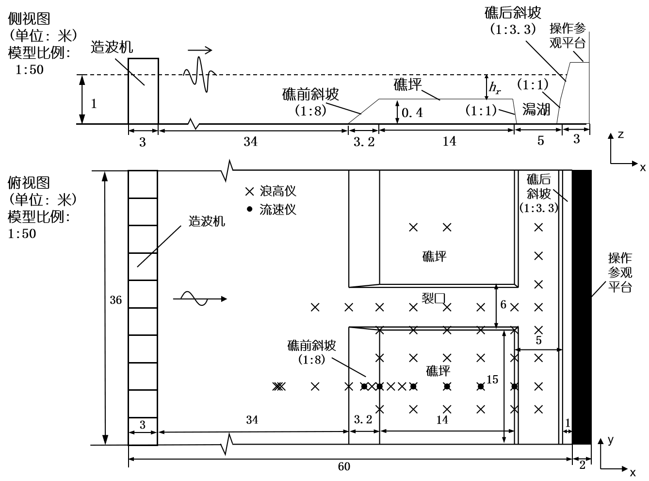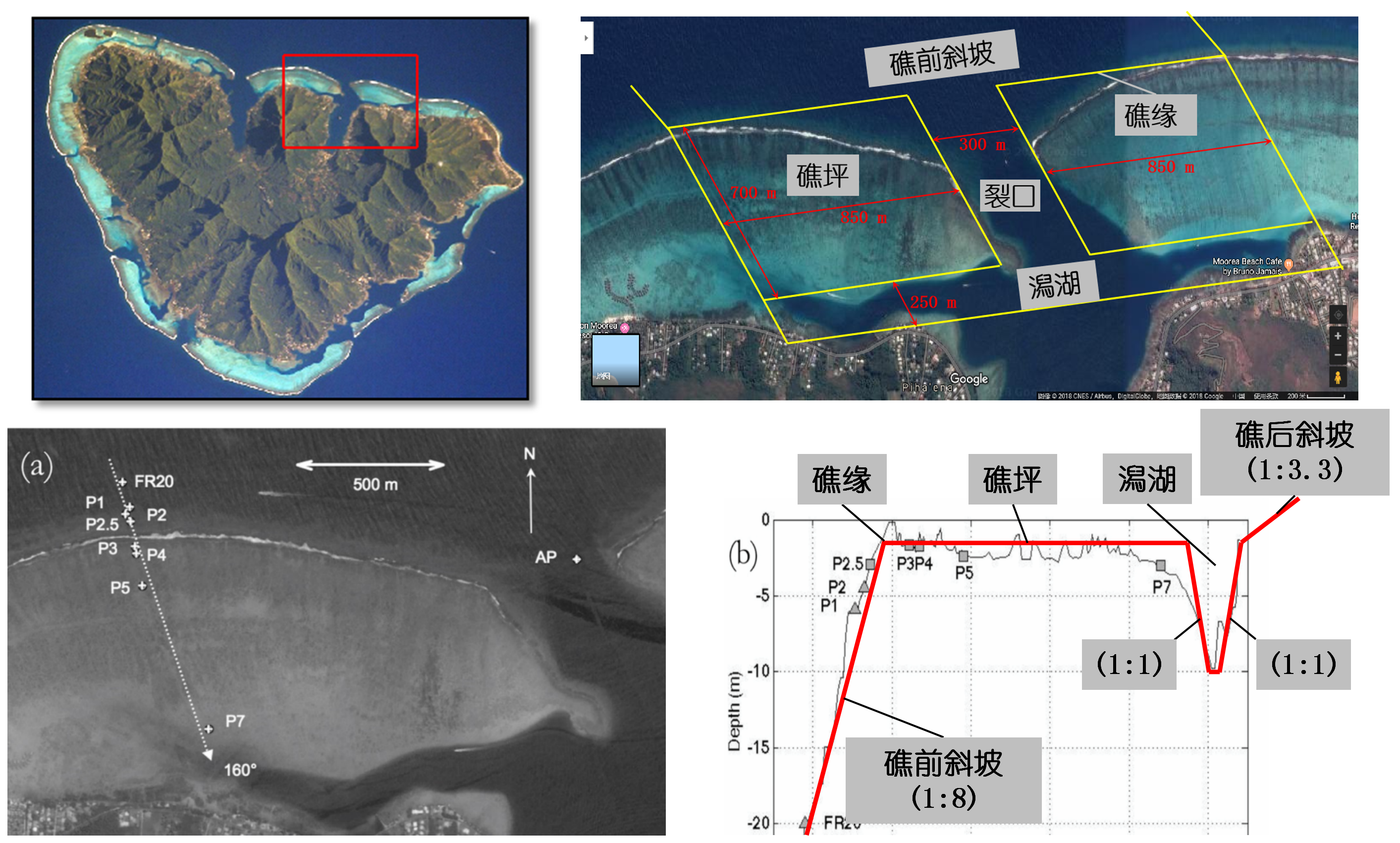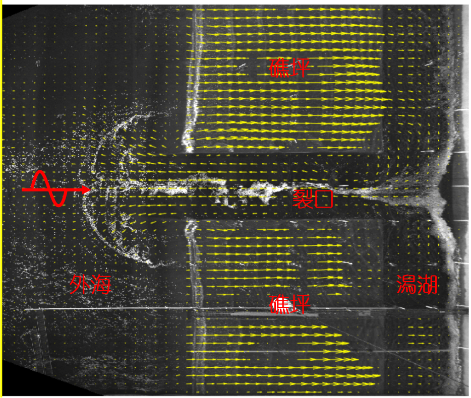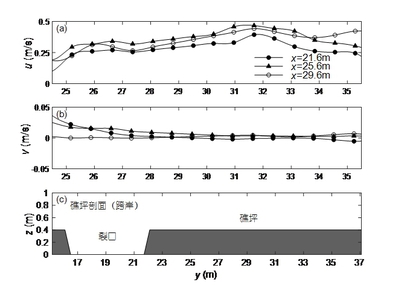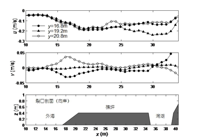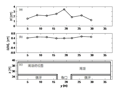 珊瑚礁地形上波浪传播变形和波生流系统对生态、环境、地貌和工程建设有着重要的影响。博彩网 郑金海教授团队与交通运输部天津水运工程科学研究院、长沙理工大学的研究人员,根据法属玻利尼亚泡泡湾珊瑚礁海岸实测资料,建立了1:50的珊瑚礁-潟湖-裂口海岸整体物理模型,采用波高仪、流速仪和表面流场测速系统测量分析了不同位置的波高和流场分布特征。模型实验研究发现:波高在礁坪向岸方向沿程逐渐减小,增水先增大后减小;波高在潟湖沿岸方向裂口处最大,向两侧逐渐减小,增水则两侧大中间小;波高在裂口中变化不大,增水则在靠近潟湖处增大较多。波浪到达礁坪后发生破碎,礁坪上水流以向岸流为主,存在着先增大后减小的趋势。水流到达潟湖后方向发生第一次90度旋转,转变为对称地指向裂口的沿岸流,流速从两侧到裂口先增大后较小。沿岸流在裂口附近汇聚,方向发生第二次90度旋转,进而形成了裂口中的离岸流,流速同样是先增大后减小。离岸流到达礁缘后继续向外海传播一段距离同时发生第三次90度的方向旋转,形成从裂口指向两侧的沿岸流。礁坪上向岸流变化是平均水位梯度和辐射应力相互作用的结果,在裂口中的离岸流驱动力主要为辐射应力,而潟湖中的沿岸流变化由平均水位梯度决定的。