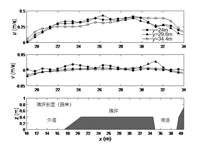 图5 潟湖沿岸剖面流速沿程变化