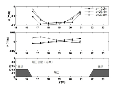 图6 裂口向岸和沿岸剖面流速沿程变化