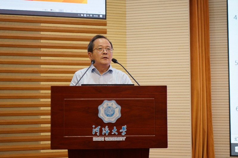 接着龚政院长分别向同学们介绍了学校和学院概况。首先,龚院长介绍了河海大学自建校以来的发展历程;接着,龚院长从基层组织、师资队伍、人才培养等方面,带领大家深入了解学院建设情况;最后,龚院长对同学们提出几点殷切希望,一是树立目标,做好规划;二是学好专业,夯实基础;三是提升能力,全面发展;四是加强交流,扩大视野;五是志量恢弘,遨游四海。