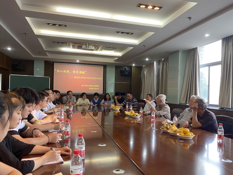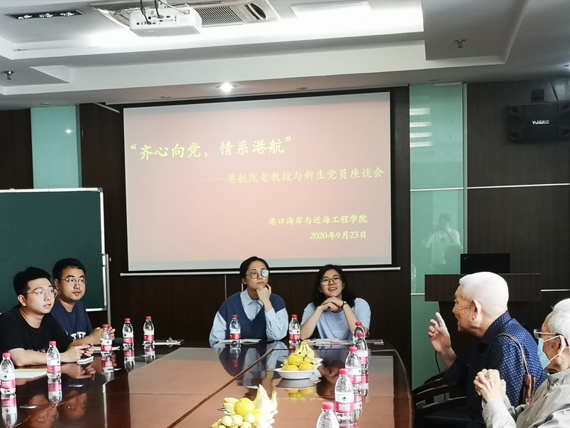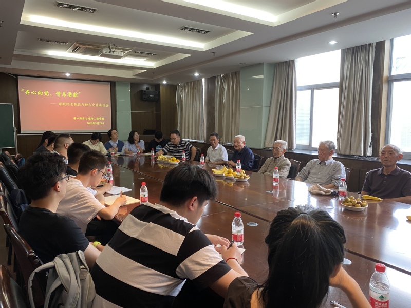 9月23日下午,博彩网 “齐心向党,情系港航”——老教授与新生党员座谈会在严恺馆502举行。座谈会邀请到葛明达、洪广文、鲁子爱、舒红缨、唐耿星、徐金环、张东生七位老教授与2020级研究生新生党员进行交流,学院党委书记胡忠华主持座谈会,党委副书记沈国军出席。