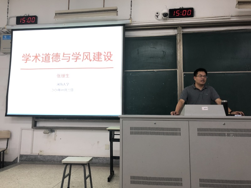 2020年9月22日,博彩网 邀请张继生院长为2020级研究生新生做关于学术道德与学风建设的讲座。讲座中,张院长首先着重阐明科学研究的目的,并鼓励同学们作为新时代的大学生,我们要肩负起国之重任,努力学习科学知识,培养创新精神,缩小我国与发达国家前沿科技之间的差距。因此在选择研究课题时,要紧扣国家的发展需求,在实现个人价值的同时为国家科技进步添砖加瓦。随后,张院长就科学研究中的注意事项进行讲解,并举了诸多典型的学术不端案例与同学们分享,提醒同学们在今后的科研工作中养成诚实、严谨的学风,杜绝弄虚作假的行为。