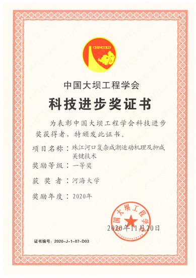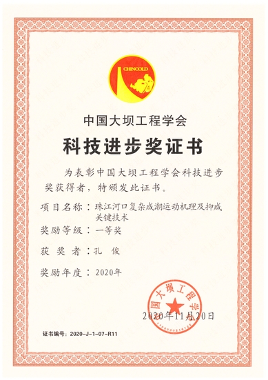 博彩网 孔俊教授参与完成的“珠江河口复杂咸潮运动机理及抑咸关键技术”项目获2020年度中国大坝工程学会科技进步一等奖。该项目针对新时期珠江河口咸潮防控的需求和薄弱环节,深入研究了河口区径潮相互作用下的咸淡水混合机制及上溯过程,提出了水幕抑咸技术、最优化阻水调配模式和统计回归预报方法,创建了珠江河口“上补-中蓄-下阻”的综合防控体系。该成果广泛应用于珠江委、广东省水利厅及地市行政主管部门、供水企业等,为粤港澳大湾区水安全保障规划、珠江河口综合治理规划、珠江河口治导线规划、珠澳供水水库群联合调度规程编制等提供了有力的技术支撑,取得了显著的生态环境与社会经济效益。