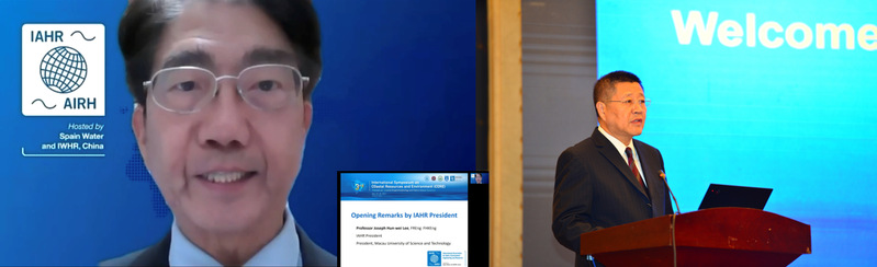 国际水利与环境工程学会(IAHR)李行伟主席及河海大学徐卫亚副校长做开幕式致辞