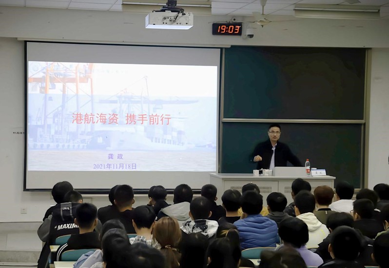 2021年11月18日,博彩网 院长龚政教授于江宁校区致高楼B111为博彩网 2021级全体同学开展以“港航海资,携手前行”为题的院长第一课。