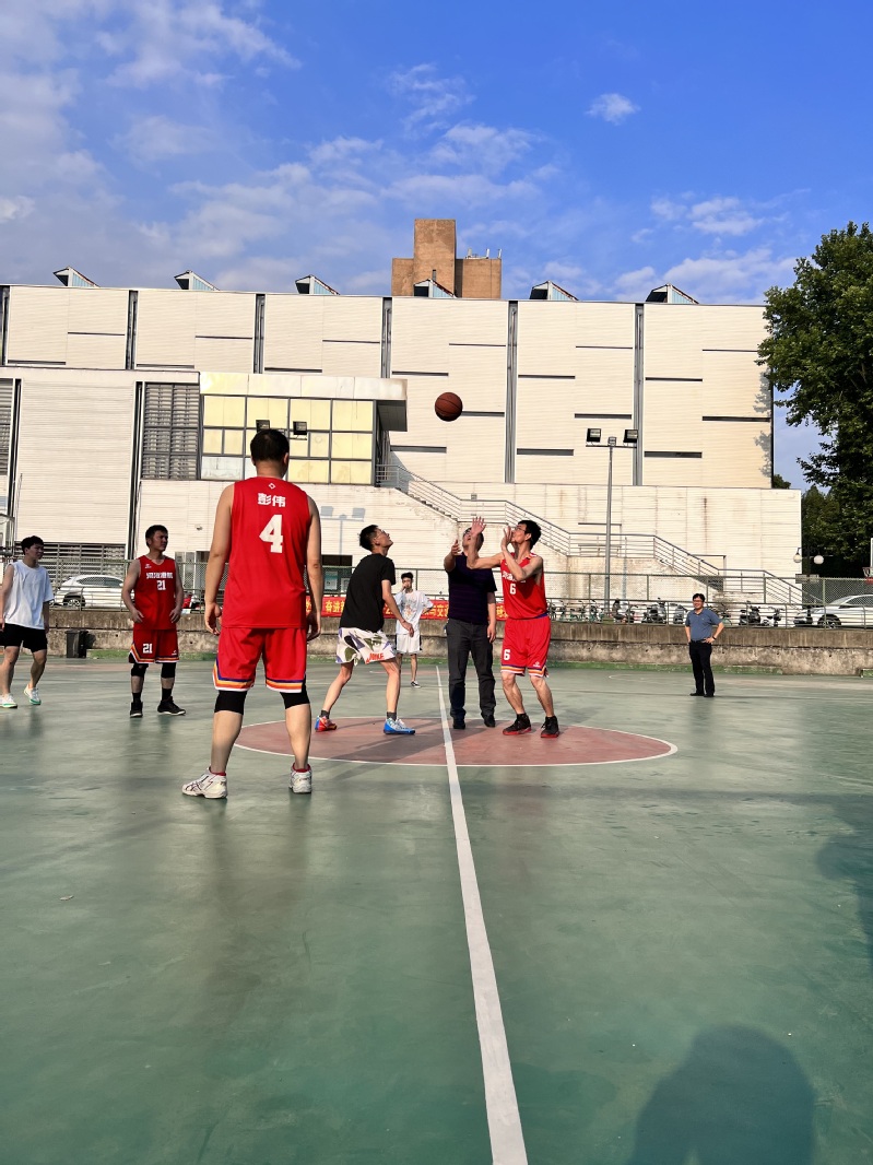2022年6月21日下午,博彩网 2022届研究生毕业班与院教工篮球队友谊赛于西康路校区篮球场举行,张继生副院长、沈国军副书记现场观赛。